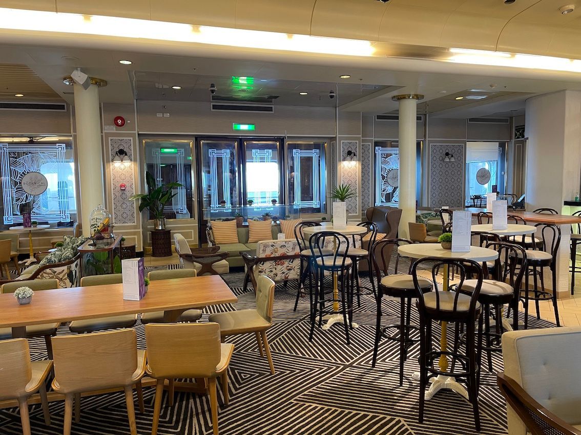 We were soon to be sailing, so we quickly joined other excited fellow guests for the sail away deck party. Drinks in hand we slowly pulled away from our berth and started sailing down the Thames Estuary. With a casual dress code for the evening we made our way to the Botanical Lounge Bar on deck 7. This bar and SW19 proved to be our favourite pre-dinner drinks spot for the cruise