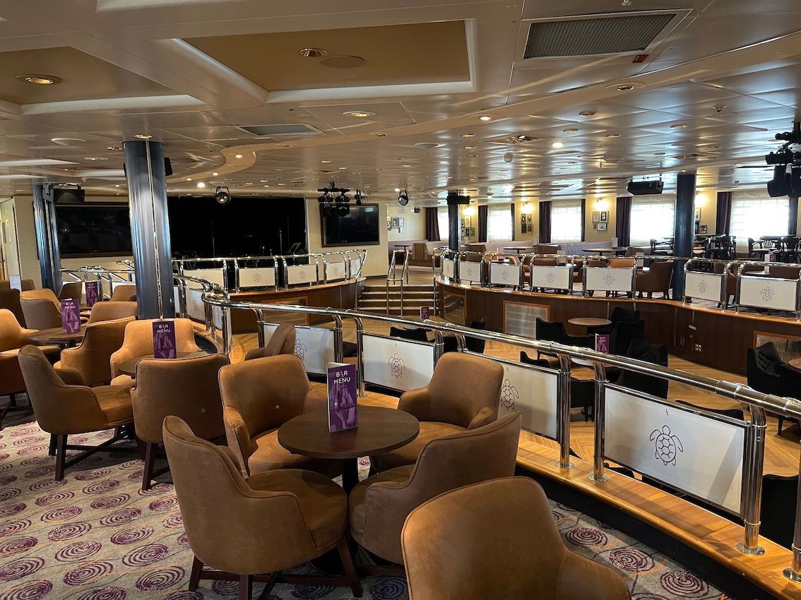 One of the many things I liked about this ship was the plentiful lounges and bars where you could sit and relax. SW19, Purple Turtle Pub, Botanical Lounge Bar, Raffles, Pool Bar, Centre Court (the atrium) and the Observatory Lounge at the top of the ship with great views. There’s a library and shopping galleria onboard too.