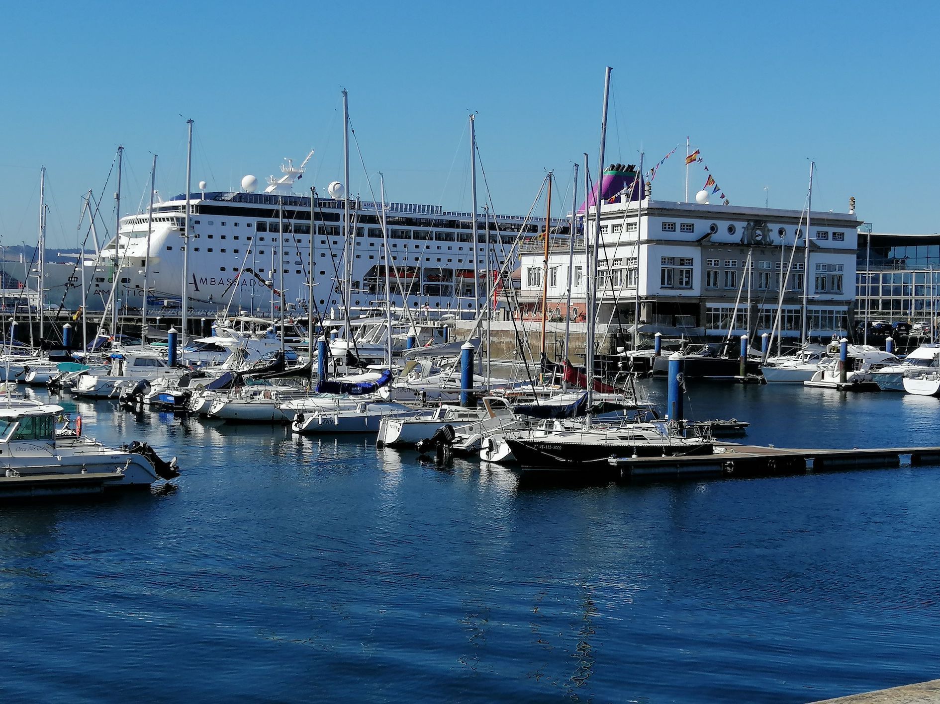 Both Ambassador's Ambition and flagship, Ambience, look like proper ships compared with the mighty multi-storey vessels. This is a traditional, affordable, cruising experience in the small ship category. You don't need a map to get around and it's easy to find your cabin! There are 1256 passengers on board Ambition (1257 with guide dog, Poppy). The average age is 60-70 with younger cruisers and many still cruising into their 80s and 90s. We're well looked after by the ever-smiling crew who keep everyone comfortable and happy. I don't know how, but they seem to remember names too!