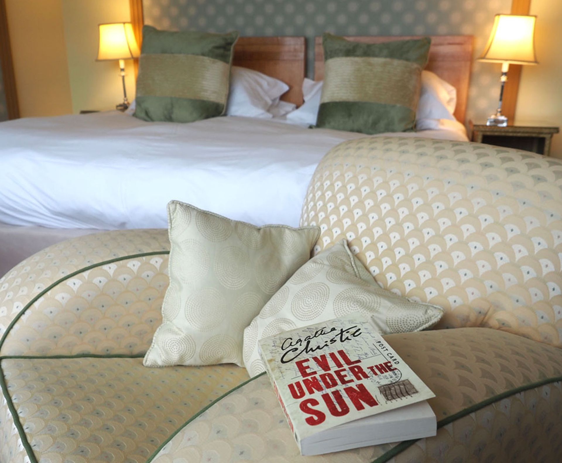 Rooms come in a number of sizes. A number of suites and smaller rooms all within the main part of the hotel. Also around the grounds there are several alternatives. For instance Agatha’s Beach house is set into the cliff facing the mainland. This modern accommodation offers beach views, sun deck and hot tub. Perhaps the Artist’s Studio which is an open plan room within the grounds and is dog friendly too. Keeping that 1930’s with rooms coming complete with typical art deco styling and decoration. Period furniture of course and I found a nice touch that they did not have was a television!