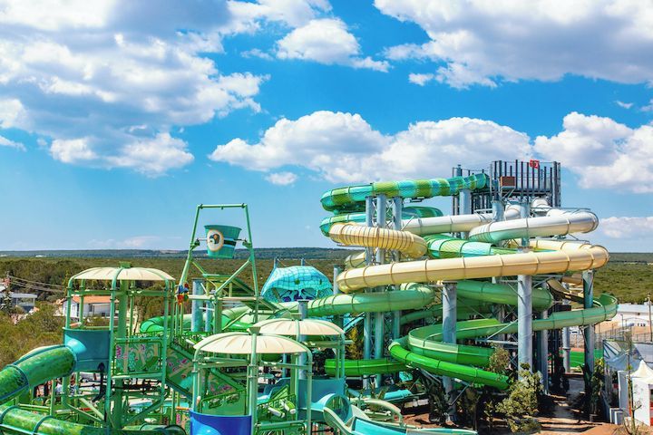 The hotel is split into three unique zones. The Community Zone is where you’ll find the main restaurant and main pool area, while the Adult Zone includes an over-18s bar, bistro and pool, which was hosting a boozy Greek toga party on the Saturday afternoon. The Family Zone, with its adventure park, waterslides, games arcade, zipline, climbing wall and mini club is a holiday paradise for little ones and teenagers.