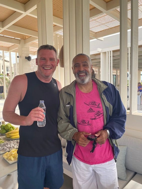The next morning, I joined Paula and around 40 other guests at Seçkin Pirim's bright yellow Gate Of Sun artwork ahead of the 5km run around the sprawling resort. Then, after post-workout ‘NGX’ Protein Shakes and Energy Balls at the adjacent Fish Camp restaurant, I joined two more Olympic legends, ‘drill instructor’ Daley Thompson and ‘expert drone pilot’ Jamie Baulch, along with Colin and Denise, for a rigorous sea-front circuits session.