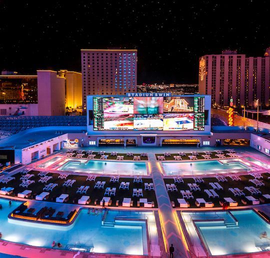 The pools at Stadium Swim were steadily filling up with sports fans, all trying to claim a place in the cooling water in front of the ginormous 40-foot-tall screen. It had only just turned 9am in Las Vegas, and Joe, Jonathan and I were already onto our second bucket of ice-cold beers and waters. Every now and then, the three of us would raise a can or just direct a nod at each other, acknowledging that there can’t be many better places on Earth to watch an England football match.