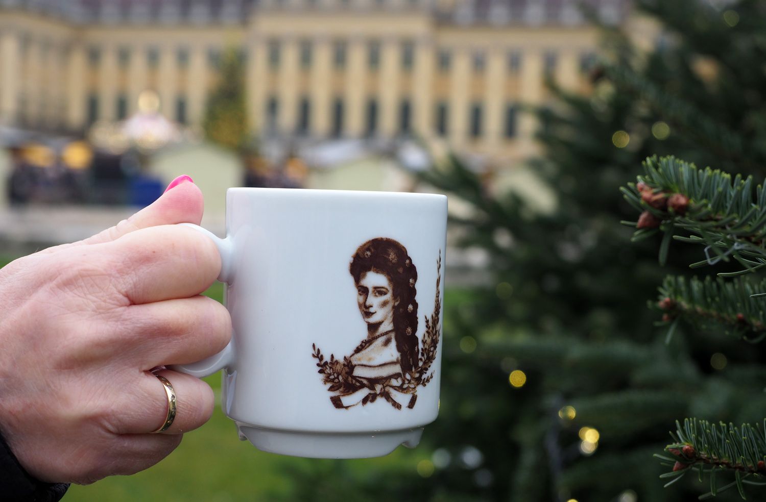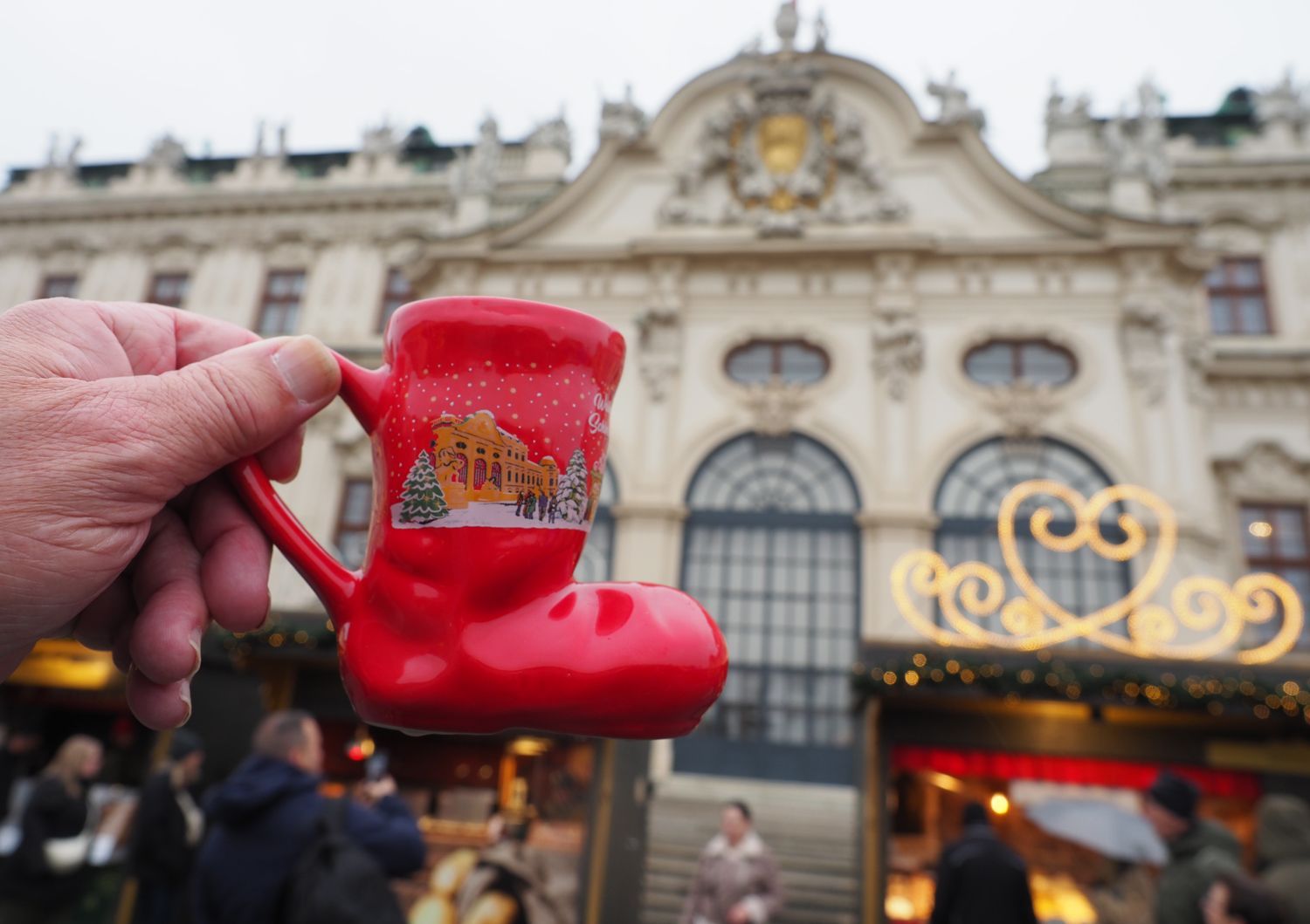 The mugs that contain the drinks are a feature, as each market has their own design. My particular choice this year were the ones at Am Hof. Their contemporary shape and styling choice with a sledging Santa caught my eye. The boot shaped mug has perhaps run its course although, The Belvedere Palace had one this year as did St Stephens. Empress ‘Sissy’ former mug at the Schonbrunn Palace was a little boring, I thought? I know that many visitors collect one from each one they visit. This year they cost around €5 each if you do not return it to the stall holder and collect your deposit from them.