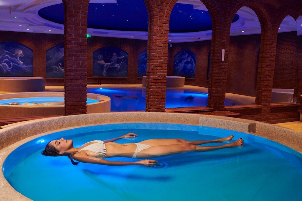 There are so many different experiences, rooms and crystal-clear pools, that it was difficult fitting everything in. As well as the Celestial Floatation Room, Rachel and I hung out in the Mediterranean garden pool surrounded by sunken jacuzzis, the majestic Roman and Colosseum pools, the saunas suite, salt-infused steam room and hydro-therapy pool (essentially a giant hot tub).
