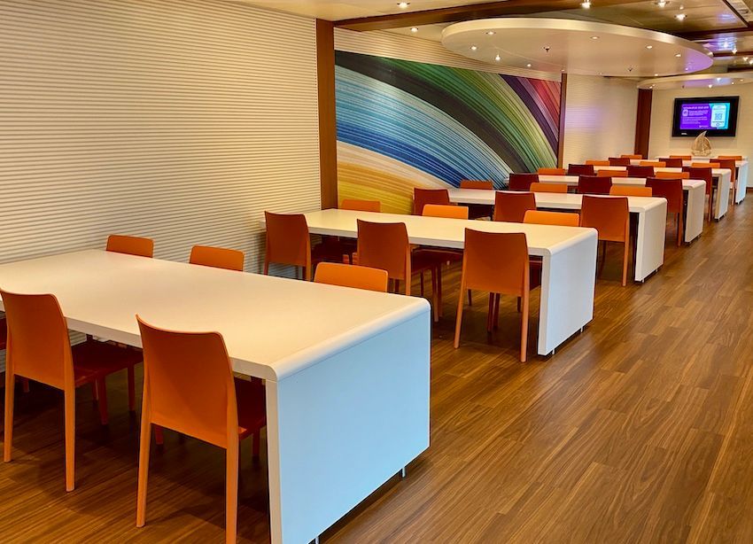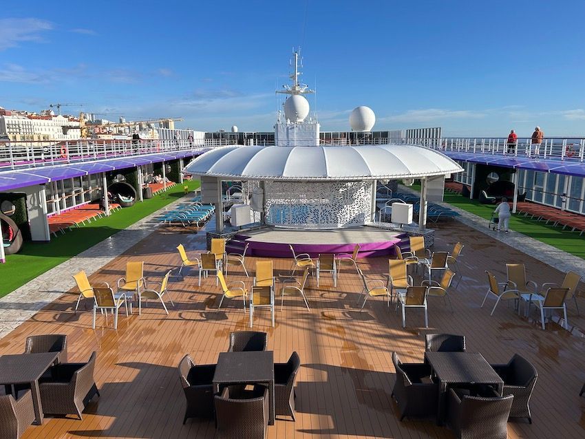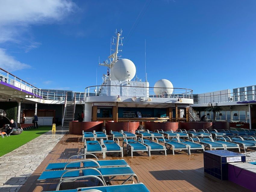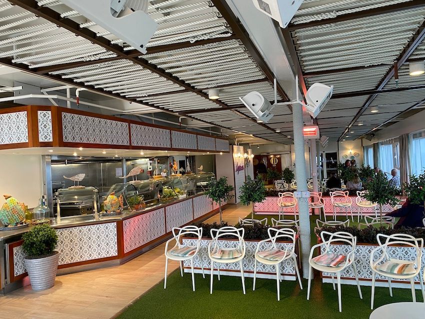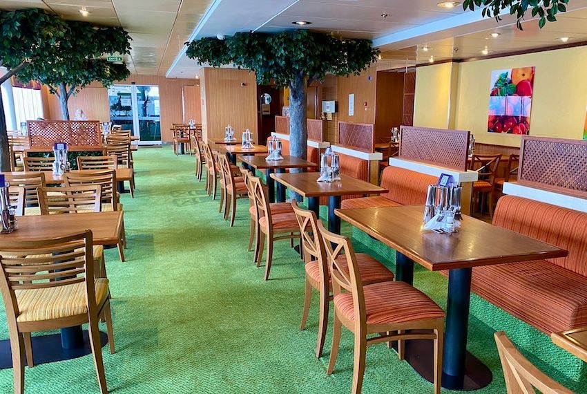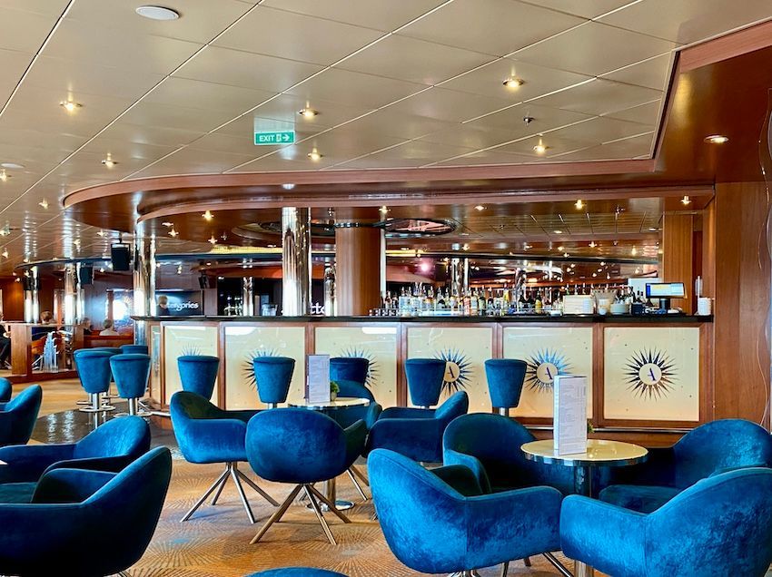 Ambition by today’s standards is small carrying only 1200 passengers but like me I know this size appeals to many. The two main dining rooms, Buckingham and Holyrood both operate 2 seatings for dinner, 5.45pm and 8.15pm, should you prefer something a little less formal the buffet, Borough Market, is situated on deck 11. Buckingham also operates a buffet for breakfast and part waiter/part buffet service for lunch. For something special try Saffron, specialising in dishes from India or Lupinos, a Mediterranean style dining experience, plus the Al Fresco Grill for that burger by the pool.