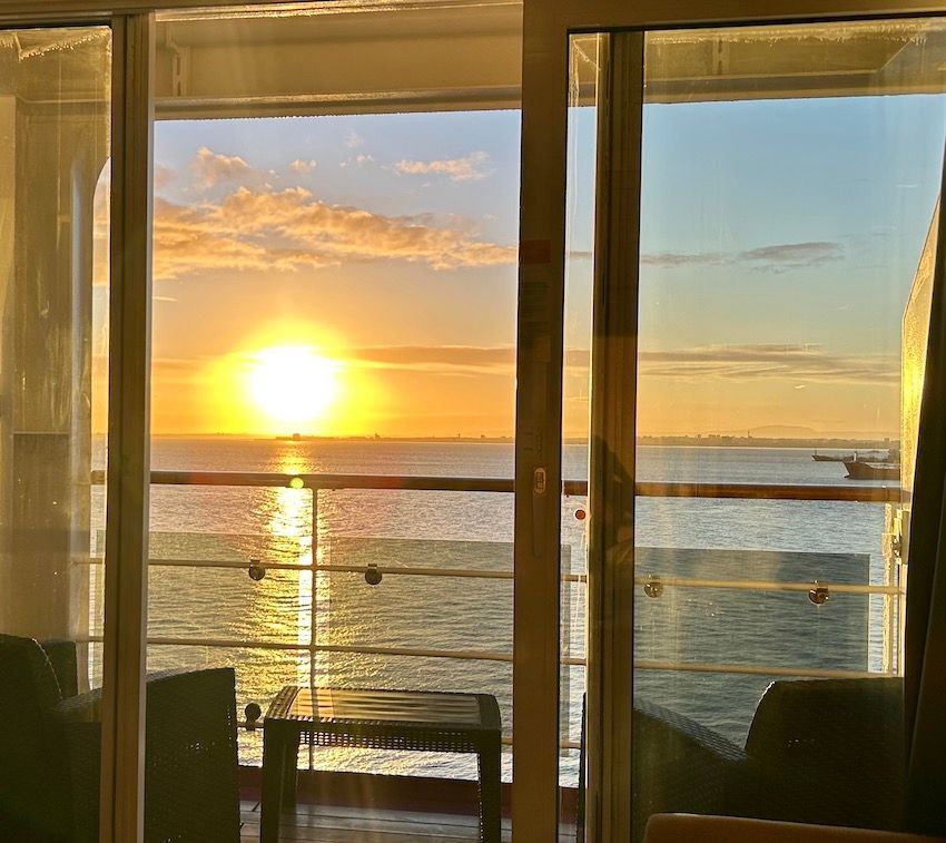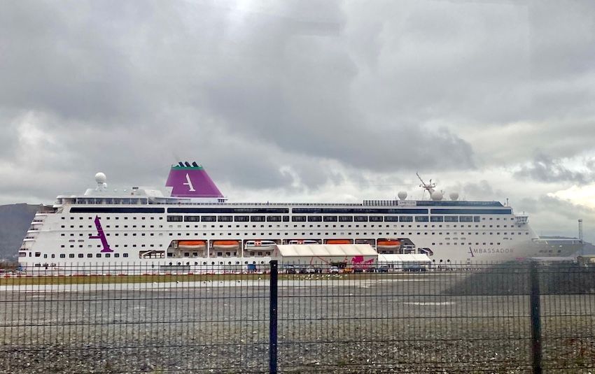 It’s January, rain is falling and wind blowing as I board Ambassador Ambition at London, Tilbury for my 23 day cruise to warmer and sunny locations.