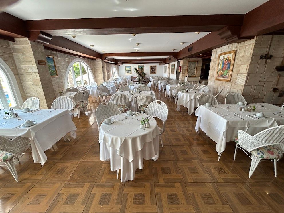 Dinner is taken in the main restaurant, a violinist is serenading diners, be welcomed by the Maître D, often a member of the Xamena family and be shown to your table of white linen tablecloths and napkins, shiny cutlery and accessories and small vase of fresh flowers. Choose from two menu’s, a la carte or ‘Gourmet’, your wine from the extensive list. Excellent food, waiter service and amongst good company, it doesn’t get much better than this. For that special occasion dine at the beach restaurant, book a table overlooking the sandy beach, the sound of waves gently lapping the shore as a guitarist serenades, the warm air scented by the pines creating romantic memories that last forever.