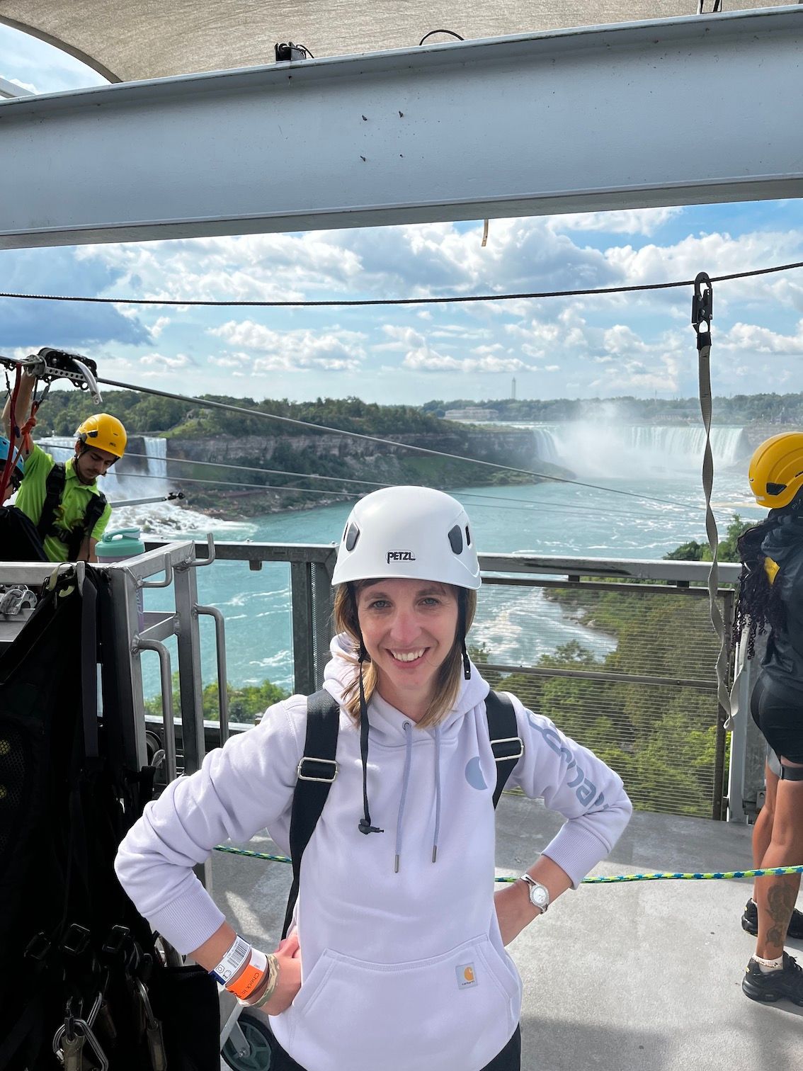Rachel initially took some convincing to ride Wildplay’s Zipline to the Falls (wildplay.com/niagara-falls) at Grand View Marketplace, but was relieved she did. We both also donned rain ponchos to experience the thunderous vibration of the millions of gallons water pouring over Horseshoe Falls in Journey Beneath the Falls (niagaraparks.com/visit/attractions/journey-behind-the-falls), took a walk inside the 2,200-foot long Tunnel, and descended 180 feet in a glass-panelled elevator at Niagara Parks Power Station (niagaraparks.com/visit/attractions/niagara-parks-power-station).