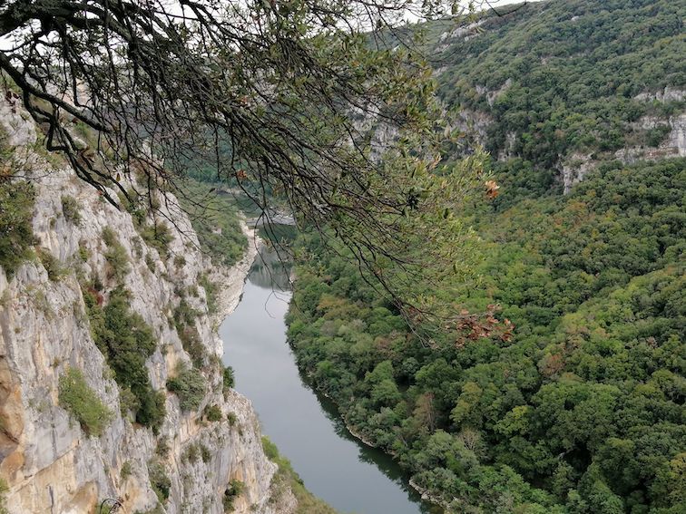 In the Ardèche Gorges. steep limestone cliffs drop down from up to 300 metres. It has taken more than one hundred million years for the pounding waters of the ice blue Ardèche river to carve a channel in these deep gorges which cover a route of 23 miles. The 30,000 year-old, famous, natural Pont d'Arc provides an entrance to the canyon. Fringed by a sandy beach, this is a popular spot for picnics, canoeing and swimming.
