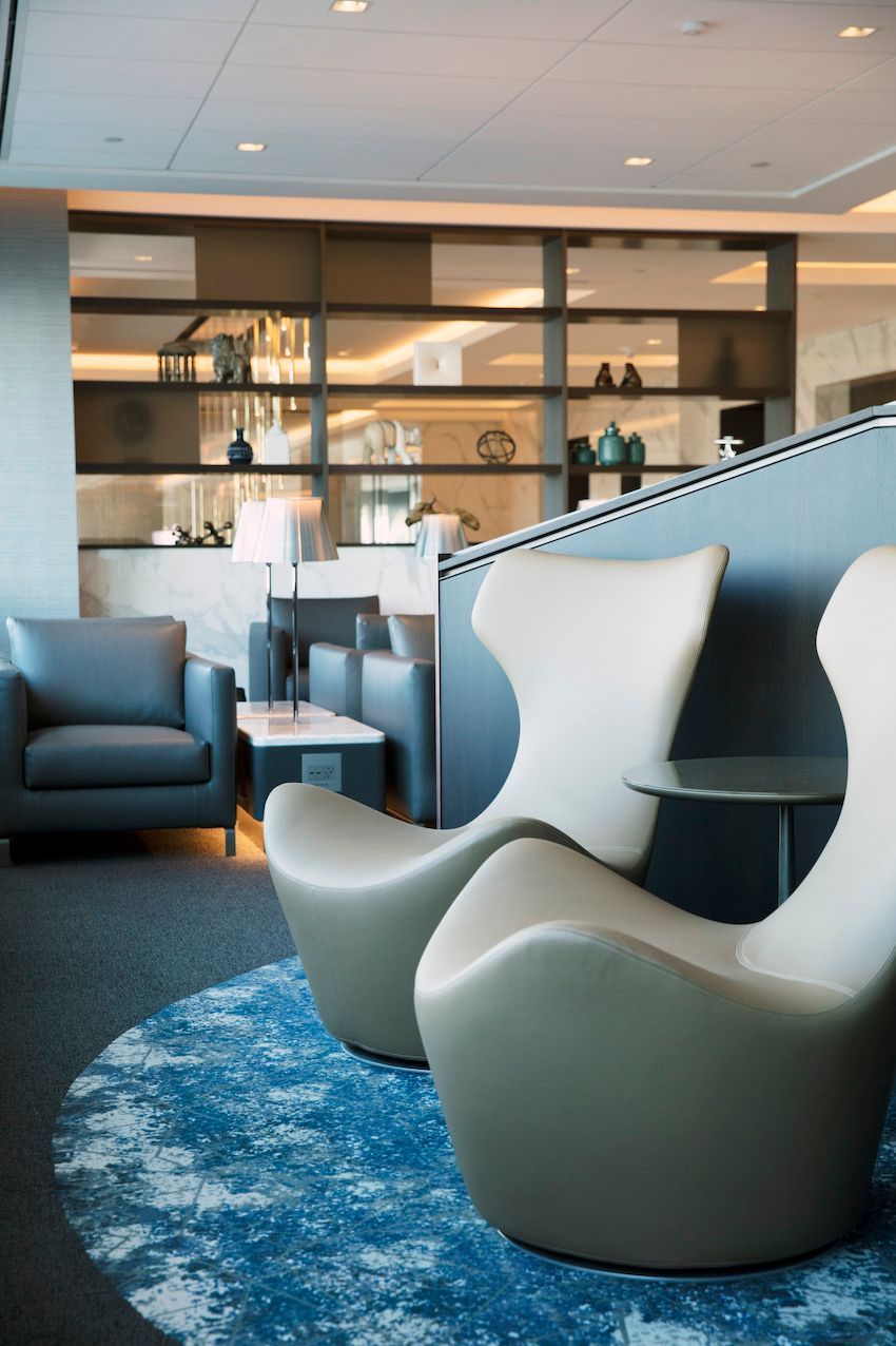 Conveniently located near the gate, United’s lounge is a haven among the hustle and bustle of Heathrow. I found a wide-ranging food-and-beverage selection, including hot breakfast items, a selection of cereals, yoghurts and breads, as well as soft, hot and alcoholic drinks available from the bar. Whether you’re lounging, dining or working, there is plenty of comfortable seating, and for those transiting through the airport, there are hot showers.